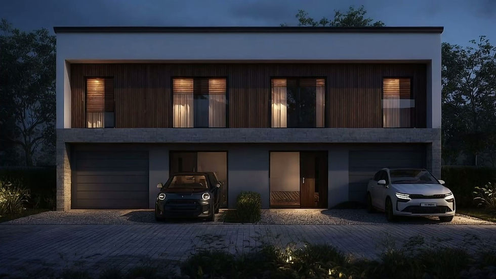 Projekt Dva domy představuje dvojdům o samostatných dvou jednotkách, harmonické spojení elegance, funkčnosti a ekologické udržitelnosti. Projekt je navržený tak, aby splňoval požadavky majitelů, kteří hledají prostor, světlo, soukromí vlastní zahrady, dostupnost centra i dálnice, nízké provozní náklady, vysokou kvalitu života a hlavně útulný domov.